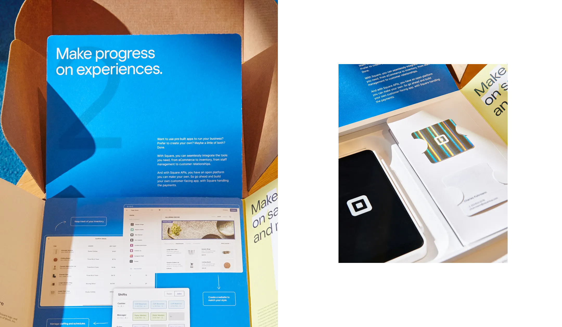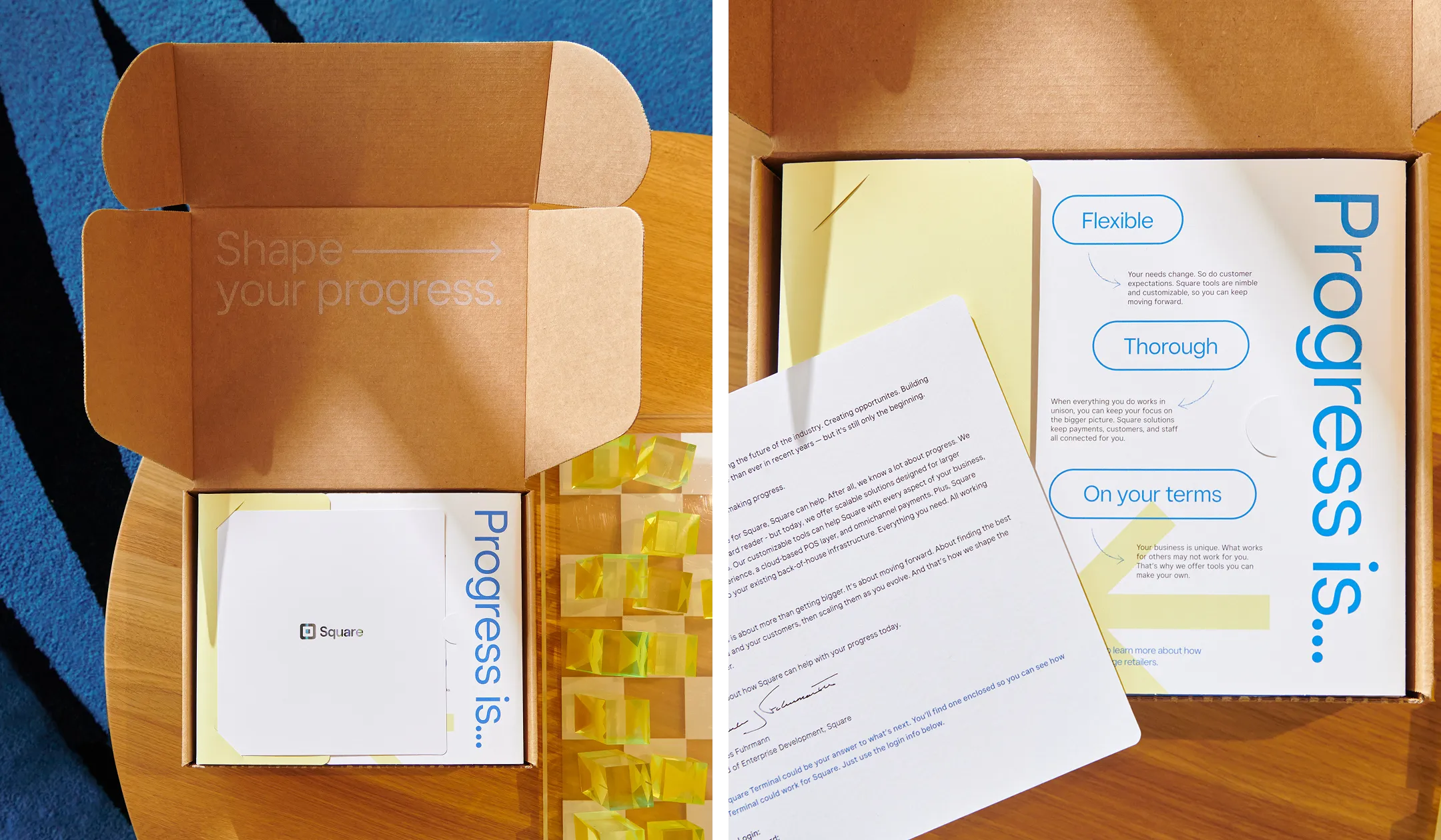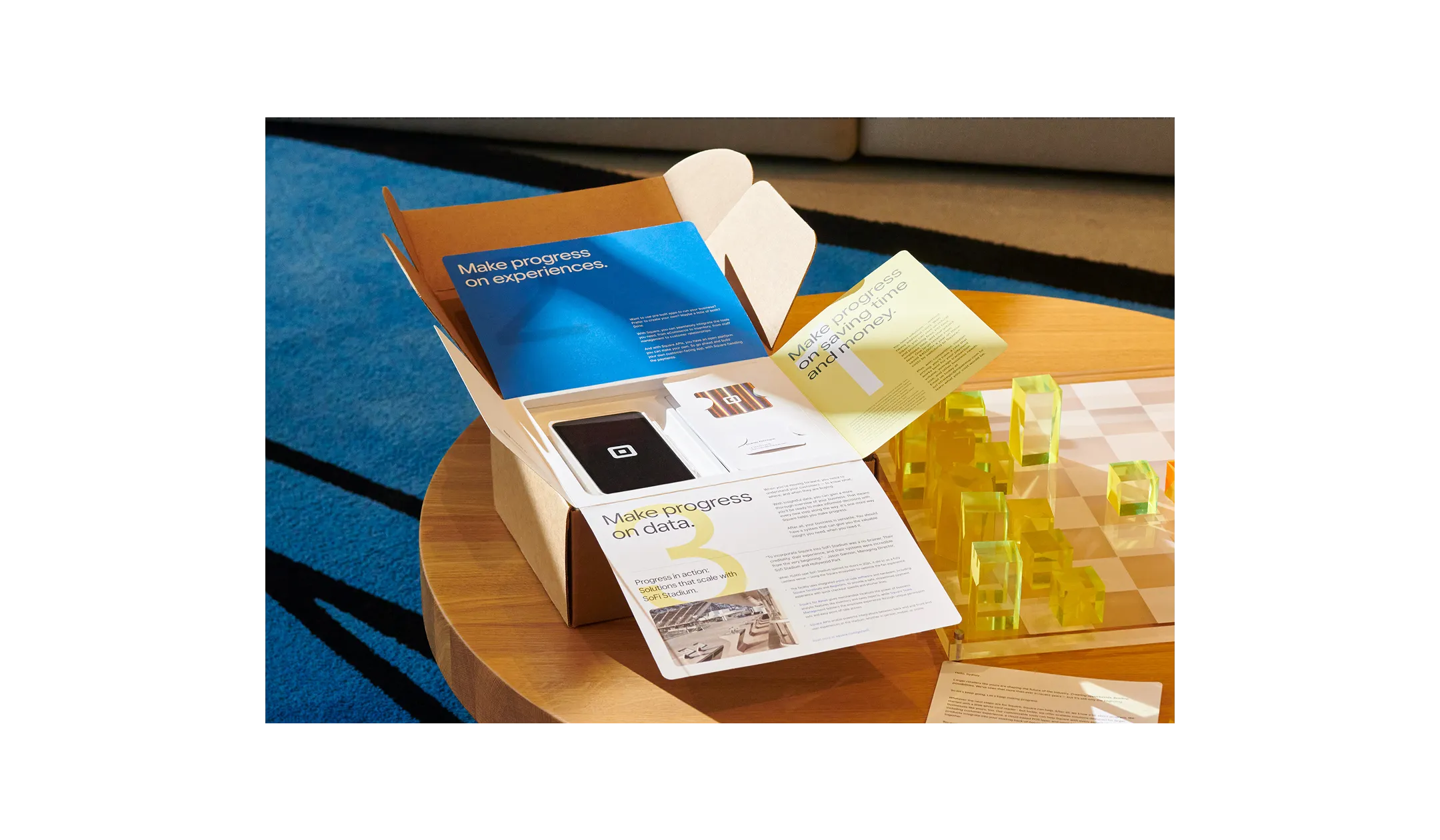 I led the visual identity and structural design for this ABM campaign, centered on the insight that running a business is a relentless series of "what’s next?" We designed a tactile unboxing experience that unfolds panel by panel, using blueprint-inspired visuals and hand-drawn elements to guide sellers through the narrative. By the time they reached the Square hardware at the center, the goal was for them to already be dreaming up their next move.