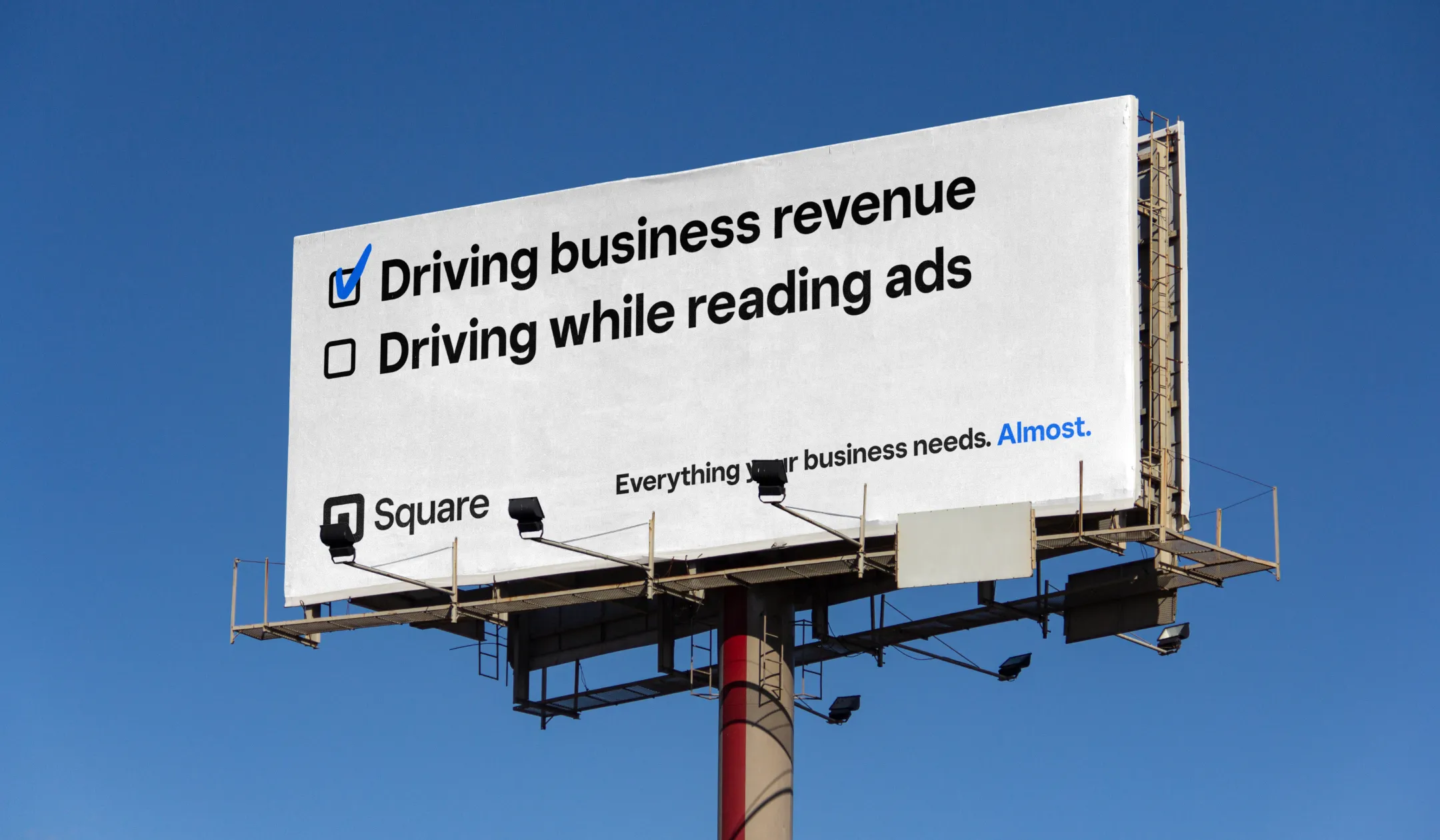 The key visual leaned into a text-only approach. Across OOH, print ads in the New York Times, and digital banners, each execution carried a two-part message: what Square can do, and what it can't. Clean, direct, and honest.